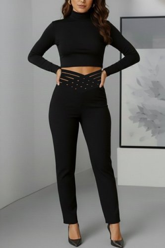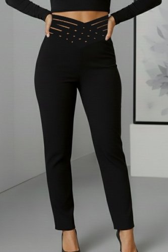 • Kadın yüksek bel çapraz şerit detaylı ithal krep pantolon