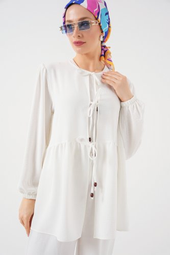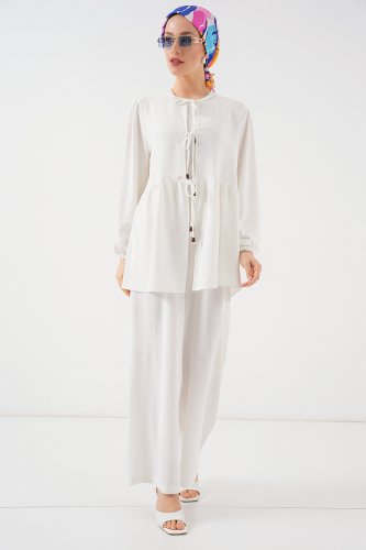 • Önü Bağcıklı Tunik Pantolon İkili Takım 6744 Beyaz