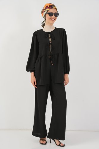 • Önü Bağcıklı Tunik Pantolon İkili Takım 6744 Siyah