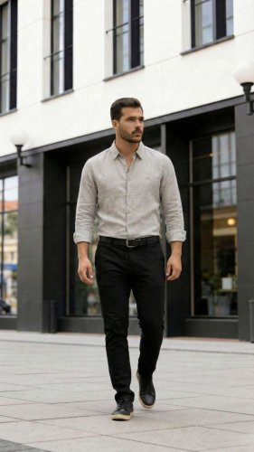 • Erkek Uzun Kollu Keten Gömlek