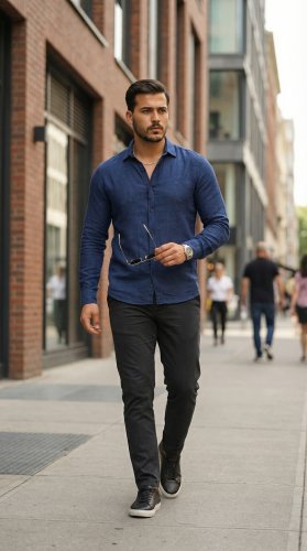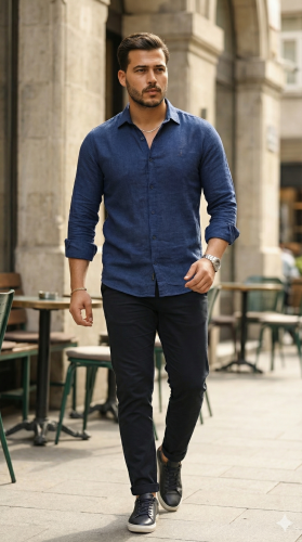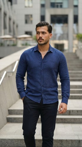 • Erkek Uzun Kollu Keten Gömlek